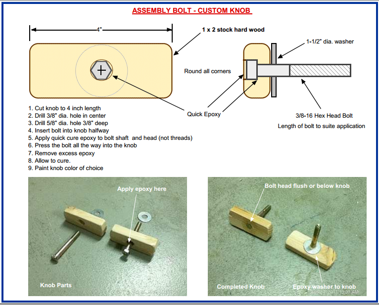 http://www.portableboatplans.com/resources/KNOB.pdf ![]() With a large enough block of wood the assembly would float. I would start with an M8 bolt and see how well it worked - spreading the point load over a large area of wood is probably more important than the bolt size. -Paul |