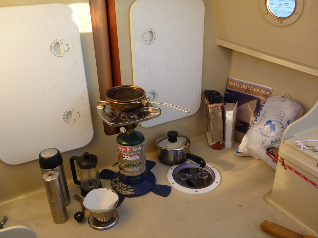 The very cheek, we Scots are merely cautious and aware that if it isn't raining today it almost certainly will be tomorrow. Having spent a few days last summer drifting down the Thames in the wee Coot I must say I am now much more confident about taking a stroll around her promenade deck and wandering forward to the mast. Providing you have your feet well placed I think she would stand for an un-stepping. ![]() Tabernacles are good but require at least a fore-stay, or you could have a gate on the upper partner/deck so that the mast could be canted backwards without the need to lift it out. This could be incorporated into a canvas/roll back hatch-cover thus enabling star gazing whilst listening the the gentle hum of the generator next door. Half way through February, not long to go now. |